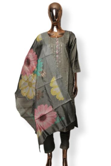 Premium Roman Silk Fabric Digital Printed Dupatta Handwork Embroidered On Yolk