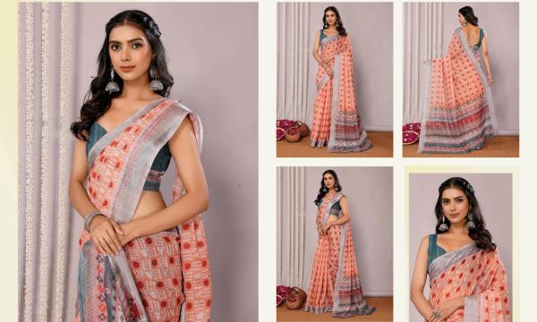 Stylish Linen Cotton Saree Printed Backless Open Shoulder Blouse Design Embroidered Saree
