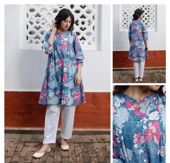 Most Beautiful Tunic Party Wear Digital Printed Cotton Fabric Embroidered