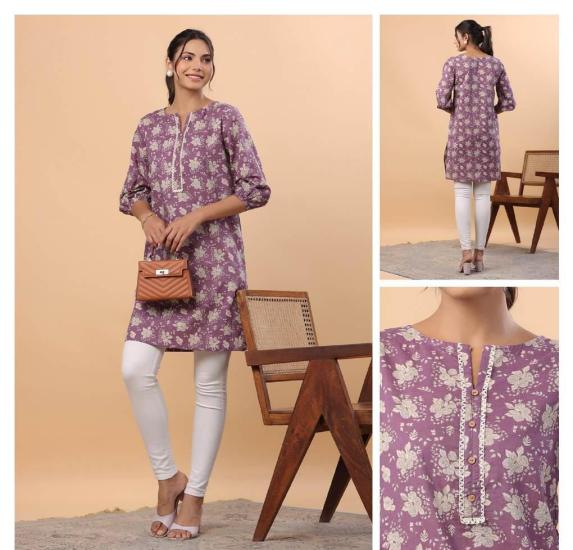 Very Beautiful Tunic Party Wear Digital Printed Look So Cute Fabric Cotton Embroidered