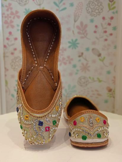 Immerse Yourself In Pure Sophistication With These White Punjabi Juttis. Embellished With Intricate Jarkan Handwork, These Juttis Are Tailored For Women With A Size 36 Foot. Their Pristine Color And Traditional Detailing Exude Timeless Elegance, Making Them The Perfect Choice To Elevate Your Ensemble For Any Occasion, Whether It Is A Formal Event Or A Casual Outing, Ensuring You Radiate Effortless Style With Every Step.