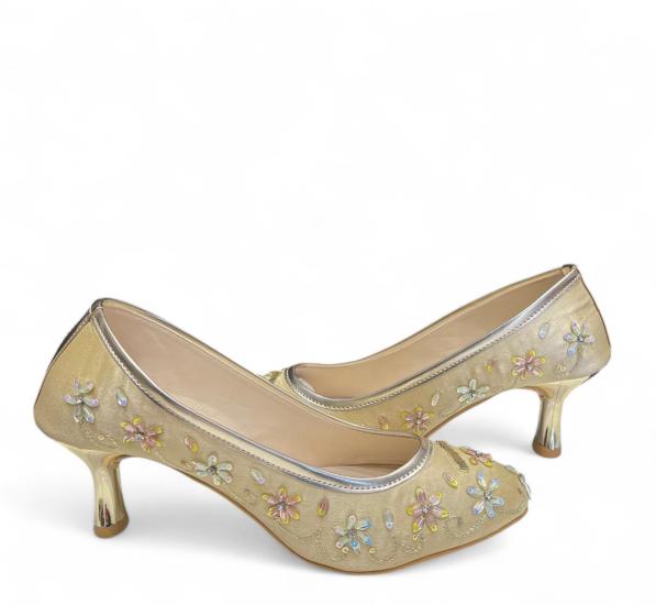 Handwork Embroidered Pattern Artificial Premium Leather High Heels