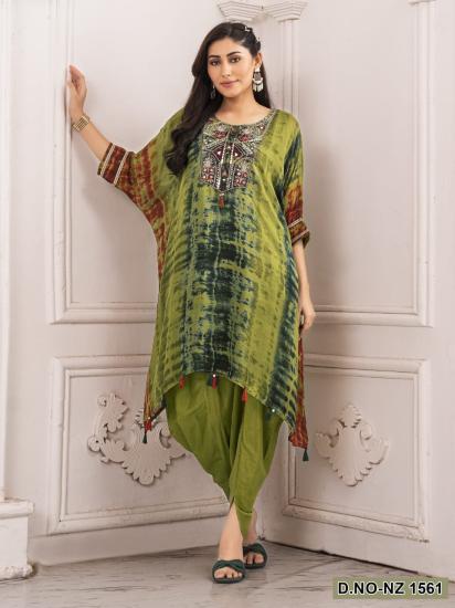 Kaftan Kurti With Tulip Pant Mirror Work