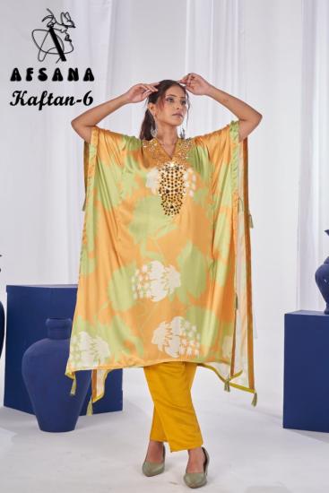 Kaftan Suit Satin Digital Print With Hand Mirror Work And Bottom Roman Trendy Kaftan