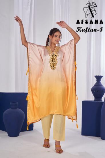 Kaftan Suit Satin Digital Print With Hand Mirror Work And Bottom Roman Trendy Kaftan